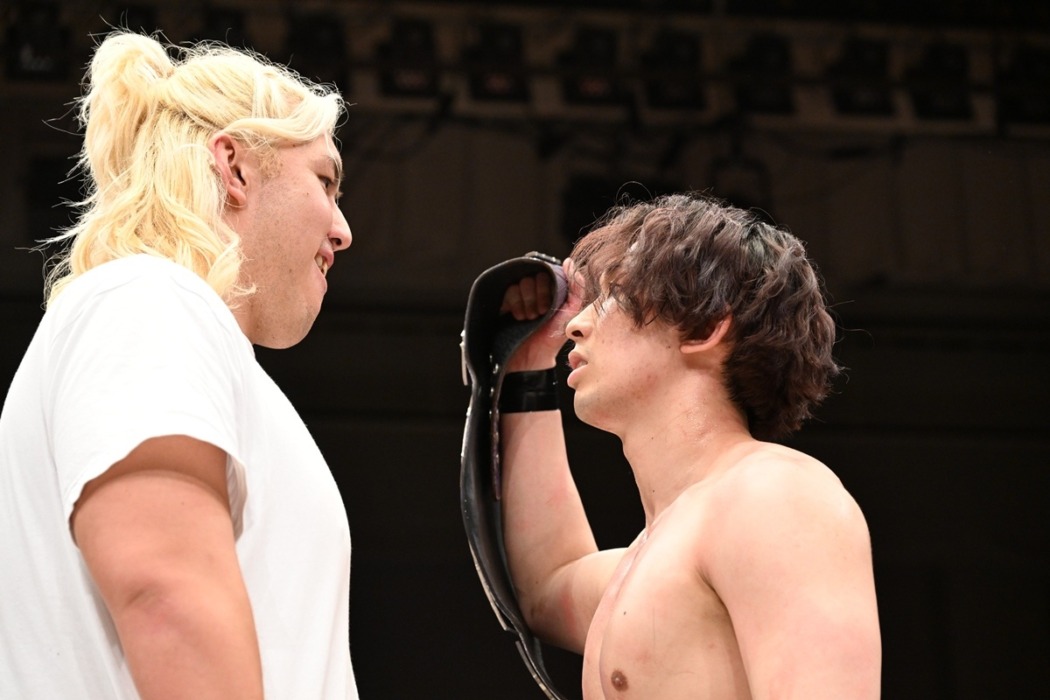 岡谷は「To-y、最後の最後に俺の顔に泥塗りやがって。でも、このリングで生き残るのは簡単じゃねぇから。早速、次の挑戦者が来てくれたな。これはでけえだけじゃ手にできないんだよ。それを教えてやる」とコメント。