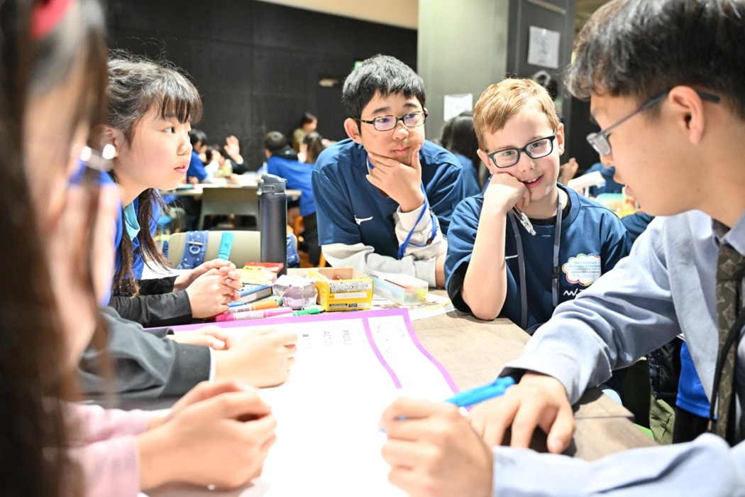 「国連を支える世界こども未来会議」は2019年、東京オリンピック・パラリンピック公認プログラムとしてスタートした「BEYOND 2020 NEXT FORUM」から生まれたもの。子どもたちがSDGsを軸に平和で豊かな世界について語り合う「ピースコミュニケーション」の場で2023年2月には国連本部より「The Children’s Conference of the Future in Support of the United Nations」というタイトルで認定されている。今年度は全国12エリアで開催。この日は各地で代表に選出された子どもたちと日本に住む外国人の小学生が13のグループに分かれSDGsゴール目標16の「平和」と「AIにはできない、新しい仕事を創ろう」をテーマに意見を交わしあった。