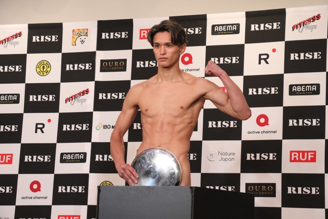 全裸にお盆で計量の奥山雅仁「自分が王者になったらRISEに新しい風が吹く」 対する塩川琉斗は「お前は脱ぐ担当」【RISE197】