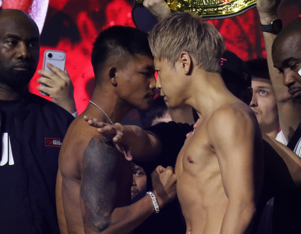 フェイスオフで武尊とロッタンが額を押し付け合い一歩も譲らず。「僕の心と体の全てを使って明日は必ずロッタン選手を倒す」【ONE SAMURAI】