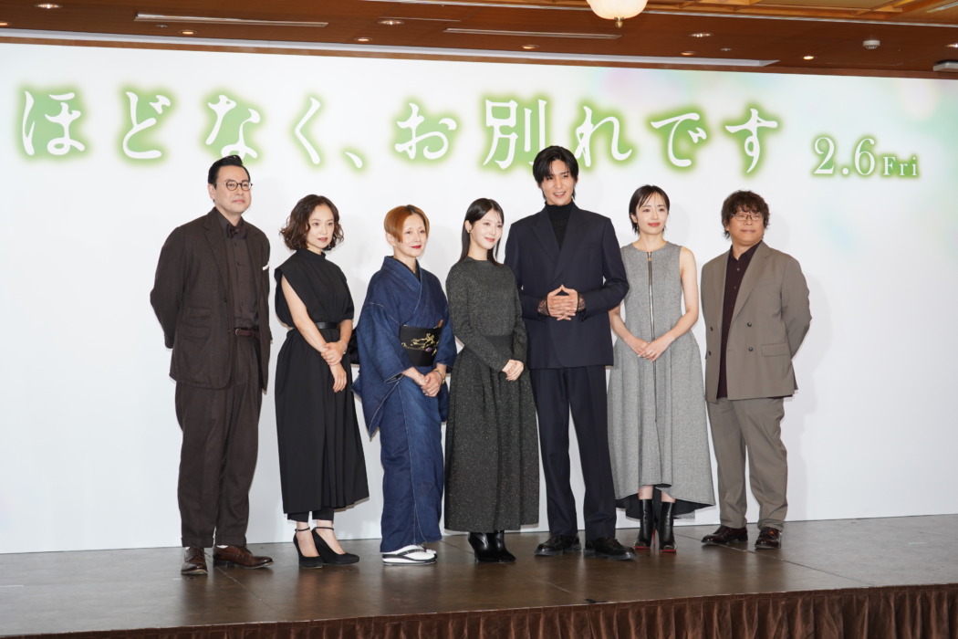 映画『ほどなく、お別れです』(2026年2月6日公開)の完成報告会が20日、都内にて行われ、俳優の浜辺美波、目黒蓮らキャストと三木孝浩監督が登壇。三木監督からの称賛に浜辺と目黒が喜びつつ笑いを誘う一幕があった。