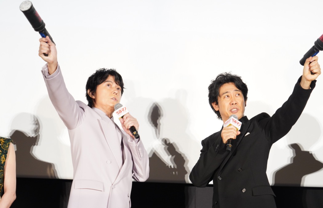 早くも動員25万人の大ヒット、先日放送のドラマもSNSでトレンド1位という高評価に福山、大泉はじめ一同も感激。さらに本作の主題歌をともに手がけた福山と稲葉浩志が今年の『紅白歌合戦』でパフォーマンスをすることも発表されており、福山は「稲葉さんと音楽づくりができるなんてまずないこと。それが紅白でパフォーマンスできるなんて。24日にはデジタルリリースもさせていただいて…」と感激を語っていたが、ふと「キンプリも何かやってたね」と、永瀬のグループKing & Princeの新作アルバムとリリース日が被ったことをチクリ。大泉も「当ててきたのか! 困るんだよ」と乗っかり、会場は大爆笑。