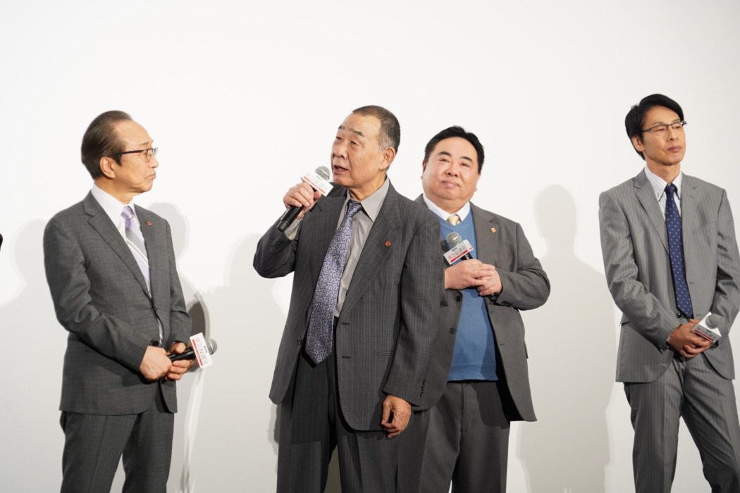 この日の登壇者は天海祐希、田中哲司、速水もこみち、鈴木浩介、大倉孝二、塚地武雅、佐々木蔵之介、石丸幹二、でんでん、小日向文世、常廣丈太監督。