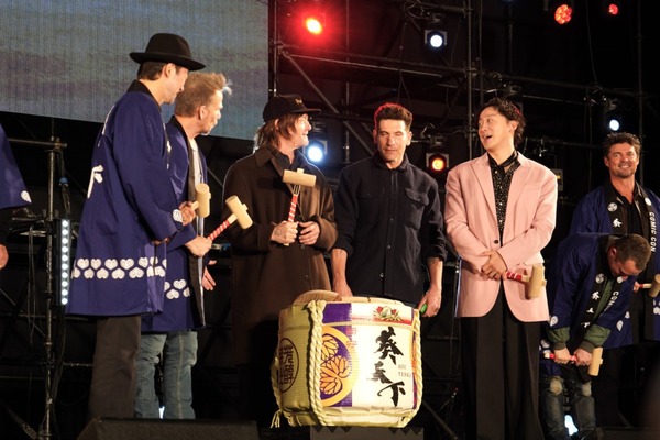 山本耕史や浅野忠信も、周囲のセレブたちと言葉を交わしたり握手をしたり。最後は一同で恒例の鏡開き。はっぴを着たり木槌を手にしたスターの姿に、観客も大盛り上がりだった。