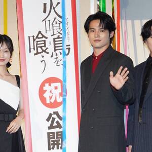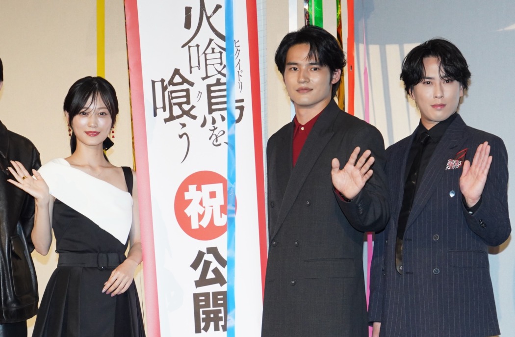 公開中の映画『火喰鳥を、喰う』の舞台挨拶が4日、都内にて行われ、俳優の水上恒司、山下美月、宮舘涼太(Snow Man)らキャスト陣と本木克英監督が登壇。宮舘が水上、山下からの絶賛に苦笑した。